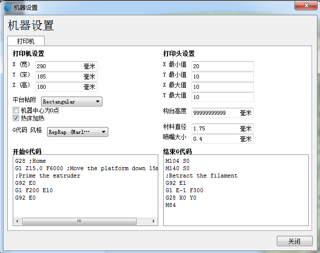 最后我們要設定打印頭及打印板的溫度,早先的機器我們一般需要事先將其加熱到一定溫度,進入一個預備打印的狀態,而現在的機型打印頭大多能夠迅速升溫,所以我們一般不需要“預加溫”這一過程,不過還是要事先設定好一個溫度。